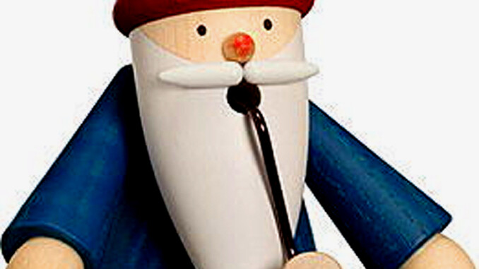 Unser Räuchermännchen heißt Emil. Er ist aus feinem Holz geschnitzt, trägt einen weiten blauen Mantel und einen großen, weißen Bart. Aber das Allerbeste an Emil ist seine kleine Öffnung in seinem Rücken und sein hohler Bauch.