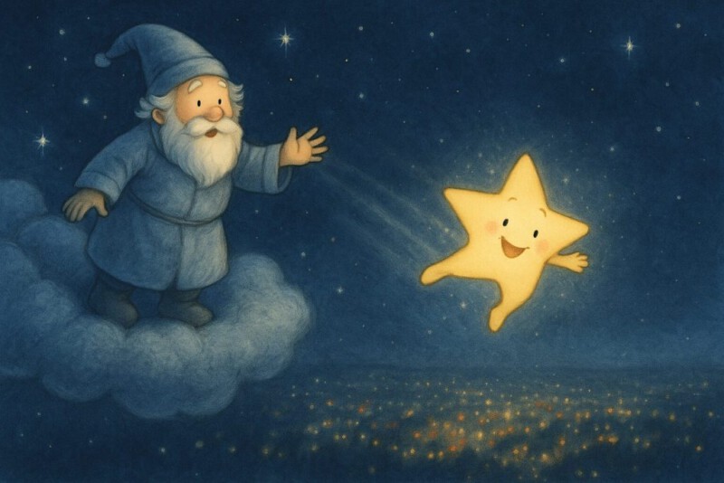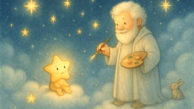 „Das gefällt mir“, rief der kleine Stern. „Erzähle mehr, Wolkenmaler!“