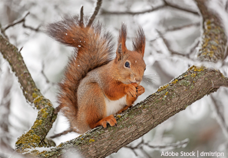 Andere Tiere haben im Herbst Vorräte angelegt, von denen sie nun leben. Eichhörnchen, Dachse und Biber schlafen nicht die ganze Zeit, sie halten eine so genannte „Winterruhe“. Von Zeit zu Zeit wachen sie auf und ernähren sich von ihren Vorräten.